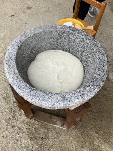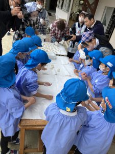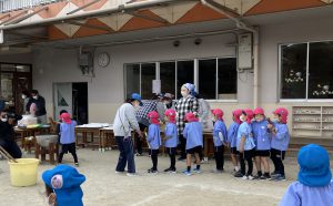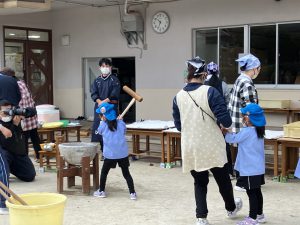 目の前でお餅をつく様子を興味津々に見ていた子どもたち🎵