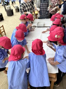 目の前でお餅をつく様子を興味津々に見ていた子どもたち🎵
