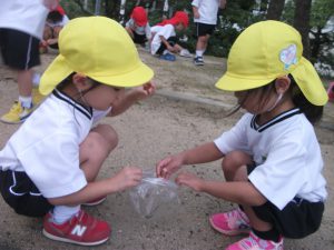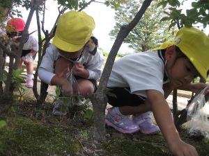 散歩に行きました♫ ~年少~2020/10/13 今日は年少さんで原田公園までお散歩に行きました‼ 「たくさん葉っぱが落ちてるかな?」 「今日はなにして遊ぼうかな?」 とウキウキしながら手を繋いで行きました💛 公園に着くと、どんぐりや落ち葉集めにとても夢中でした🎵 まだ青いどんぐりの実をながめながら次回のお散歩を楽しみにしている子どもたちです😊