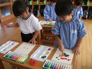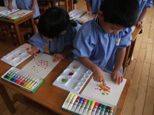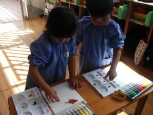 久しぶりの絵の具におおはしゃぎでした(^^♪