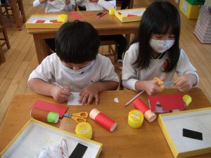 製作では🎅サンタクロース🎅を折り紙で作りました✂